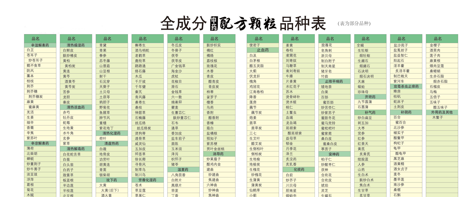 全成分中藥配方顆粒 全成分中藥配方顆粒 康仁堂“全成分”中藥配方顆粒以傳統(tǒng)湯藥為標(biāo)準(zhǔn),進(jìn)行“全成分”工藝設(shè)計,選用優(yōu)質(zhì)“道地藥材”為原料,進(jìn)行“依法炮制”,經(jīng)提取濃縮、干燥制粒等工藝精致而成,實現(xiàn)了配方顆粒和傳統(tǒng)湯藥“物質(zhì)基礎(chǔ)和臨床療效”的一致性,保證中醫(yī)臨床用藥更穩(wěn)定,更有效。 ? ? ? ? ? ? ? ? ? ?